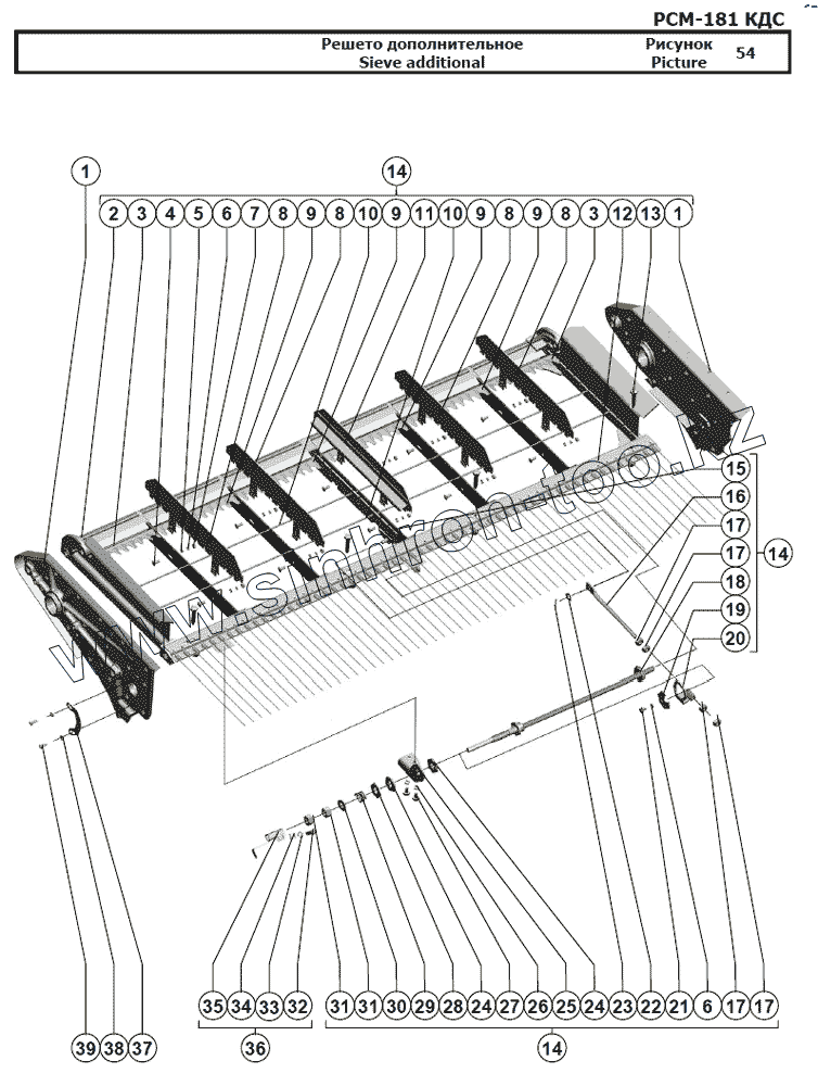 Каталог запасных частей к технике: РСМ-181 "Torum-740". Решето дополнительное