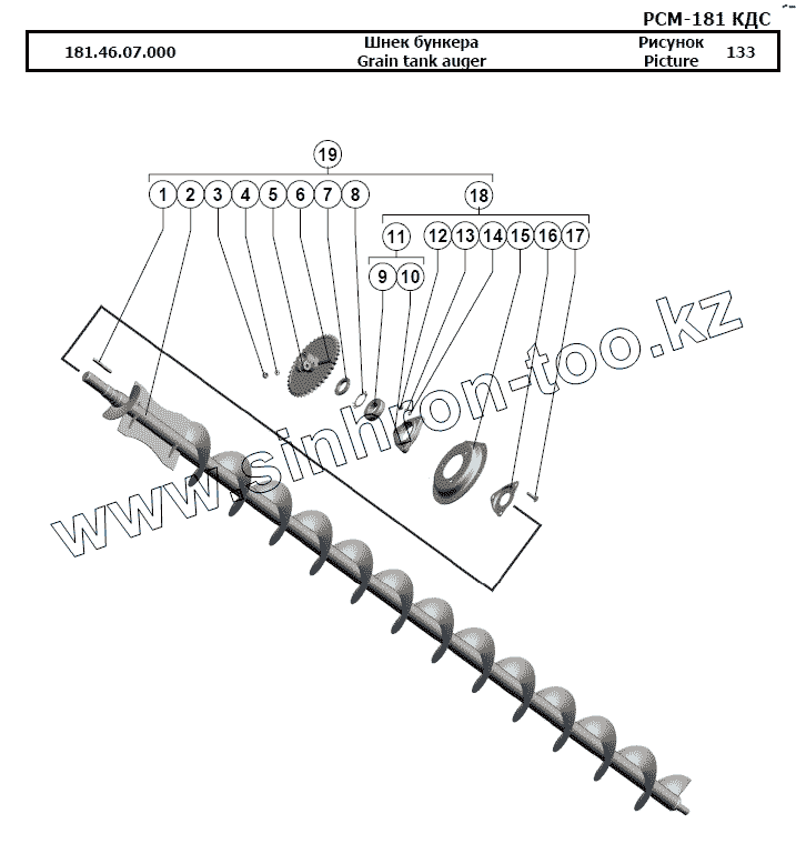 Каталог запасных частей к технике: РСМ-181 "Torum-740". Шнек бункера
