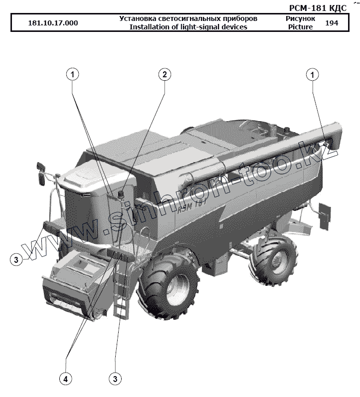 Каталог запасных частей к технике: РСМ-181 "Torum-740". Установка светосигнальных приборов