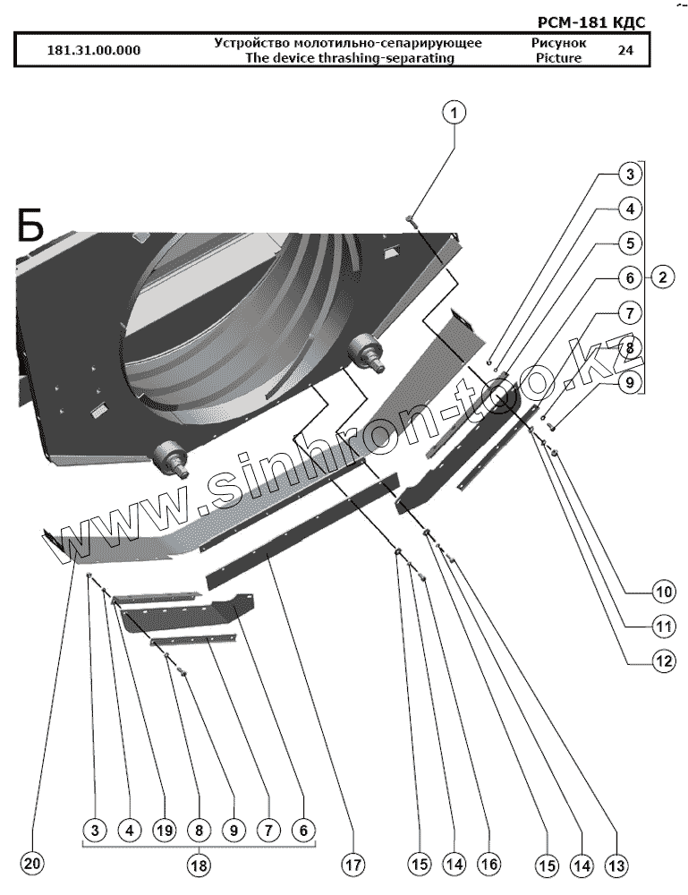 Каталог запасных частей к технике: РСМ-181 "Torum-740". Устройство молотильно-сепарирующее
