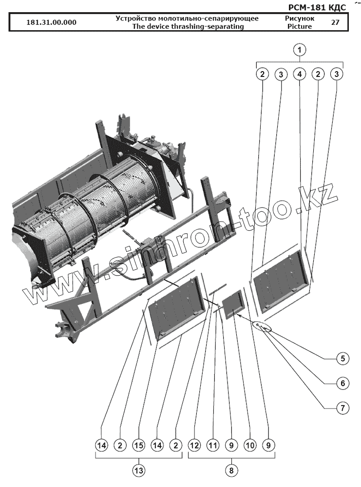 Каталог запасных частей к технике: РСМ-181 "Torum-740". Устройство молотильно-сепарирующее