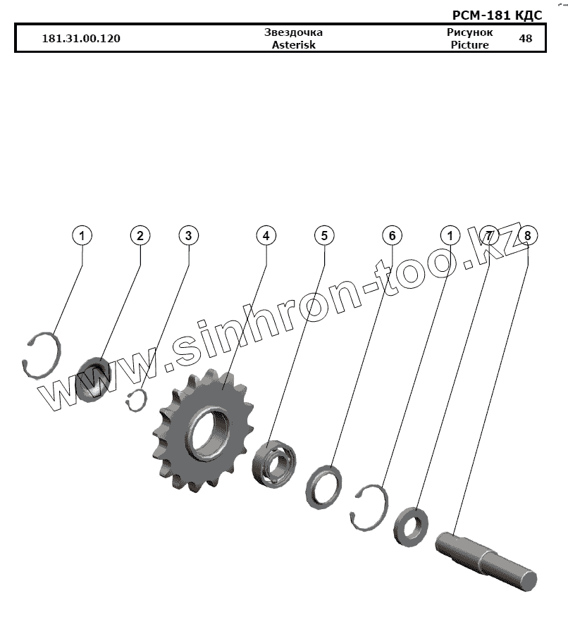 Каталог запасных частей к технике: РСМ-181 "Torum-740". Звездочка
