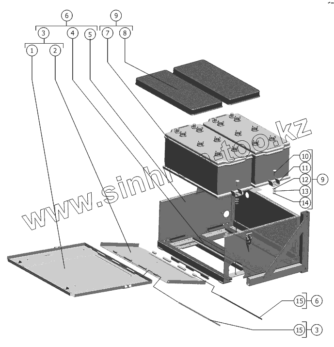 Каталог запасных частей к технике: РСМ-181 "Torum-740" (вариант). Ящик аккумуляторный