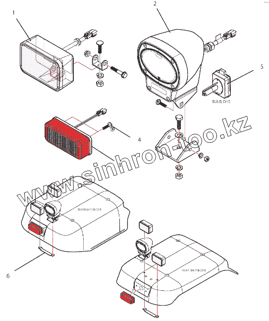 Каталог запасных частей к технике: РСМ 2375. Фары задних крыльев (2375.03.005)