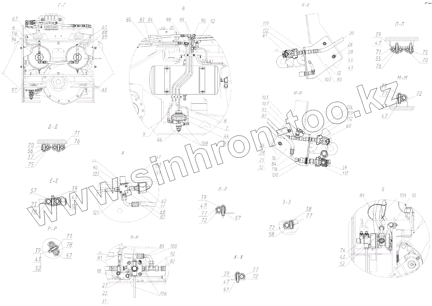 Каталог запасных частей к технике: РСМ 2375. Пневмосистема (2375.29.00.100)