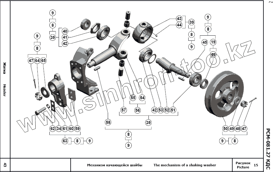 Каталог запасных частей к технике: РСМ Жатка РСМ-081.27. Механизм качающейся шайбы