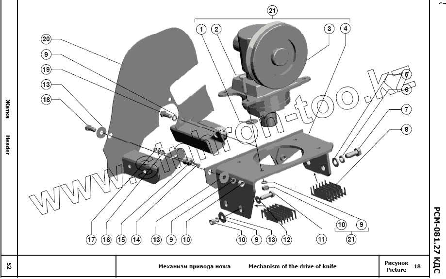 Каталог запасных частей к технике: РСМ Жатка РСМ-081.27. Механизм привода ножа