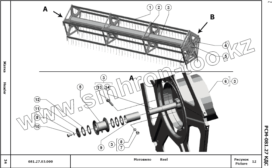 Каталог запасных частей к технике: РСМ Жатка РСМ-081.27. Мотовило