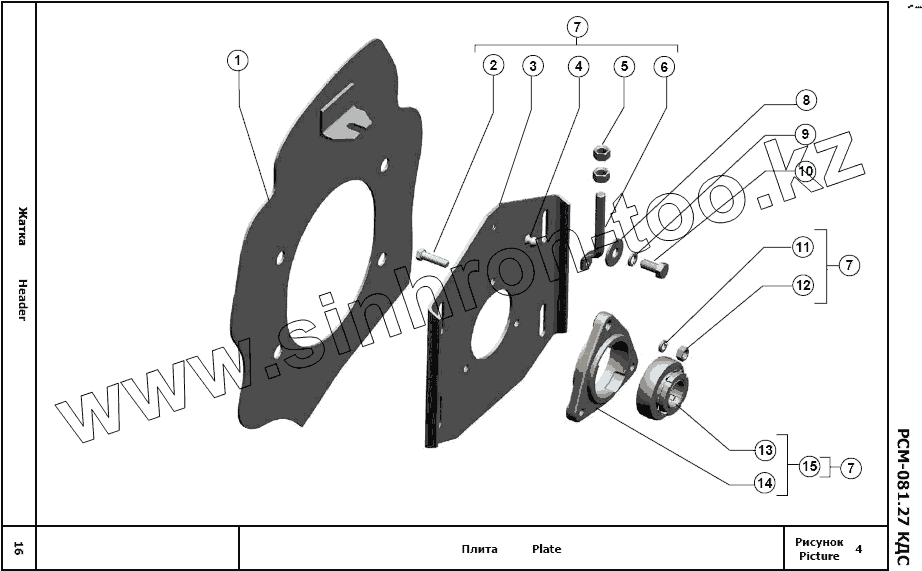 Каталог запасных частей к технике: РСМ Жатка РСМ-081.27. Плита