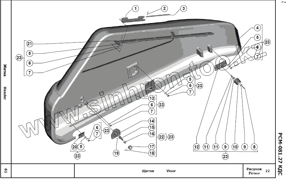 Каталог запасных частей к технике: РСМ Жатка РСМ-081.27. Щиток