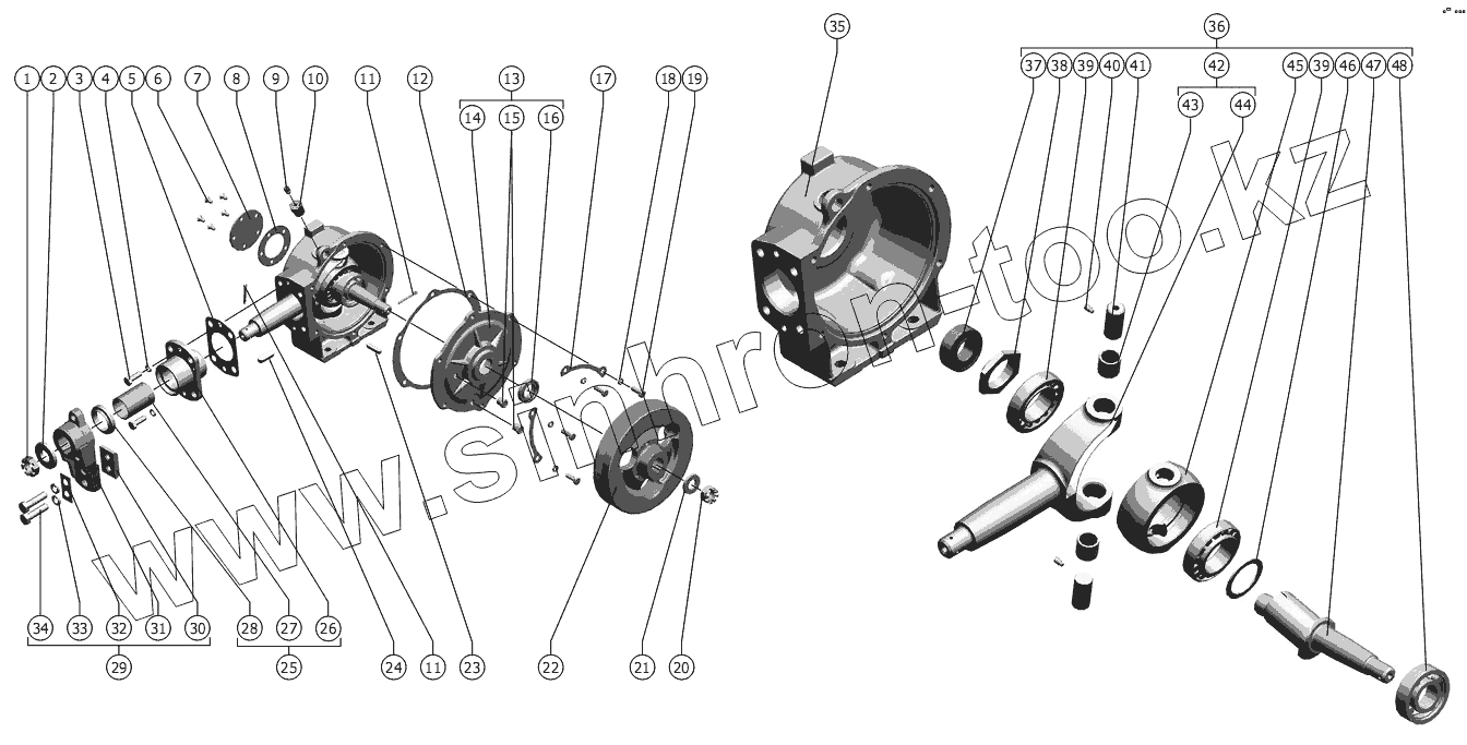 Каталог запасных частей к технике: РСМ Жатка РСМ-081.27 (вариант). Механизм качающейся шайбы