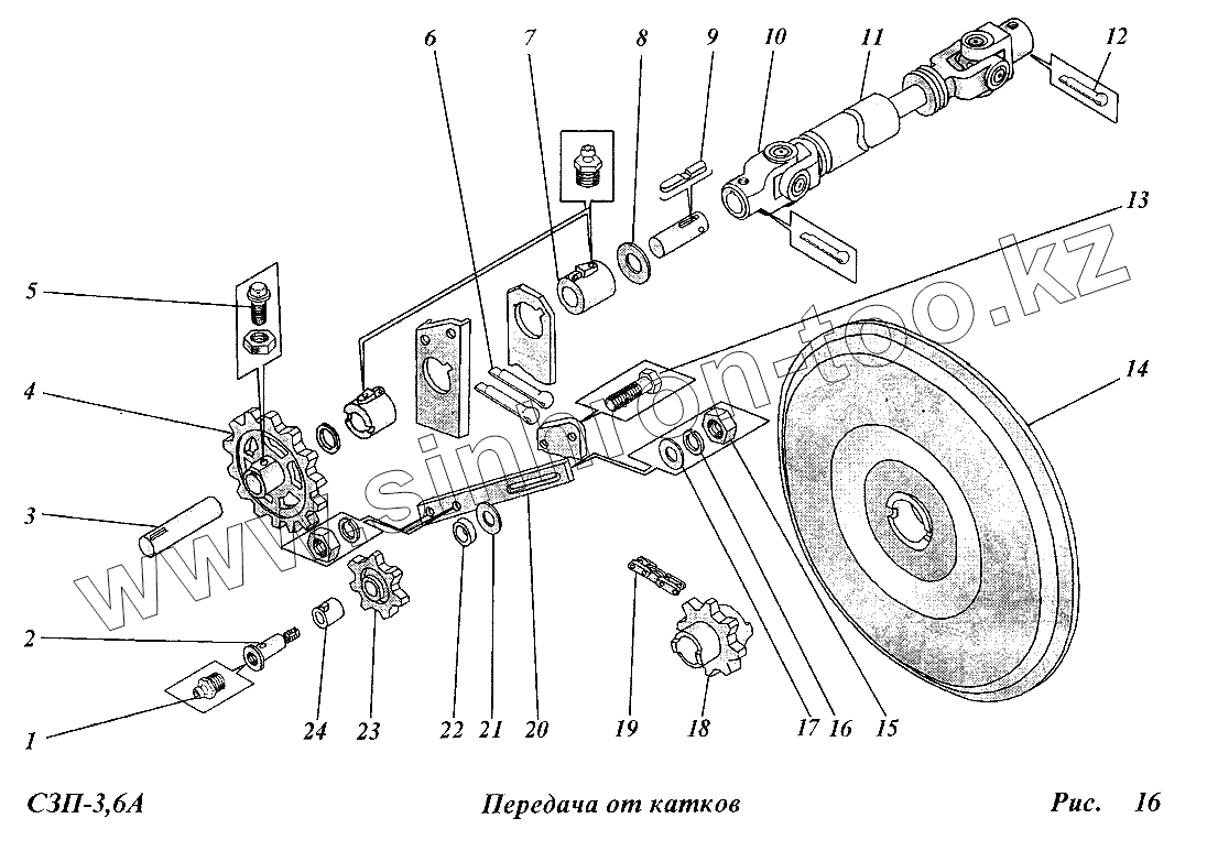 Каталог запасных частей к технике: Сибсельмаш СЗП-3,6А. Передача от катков