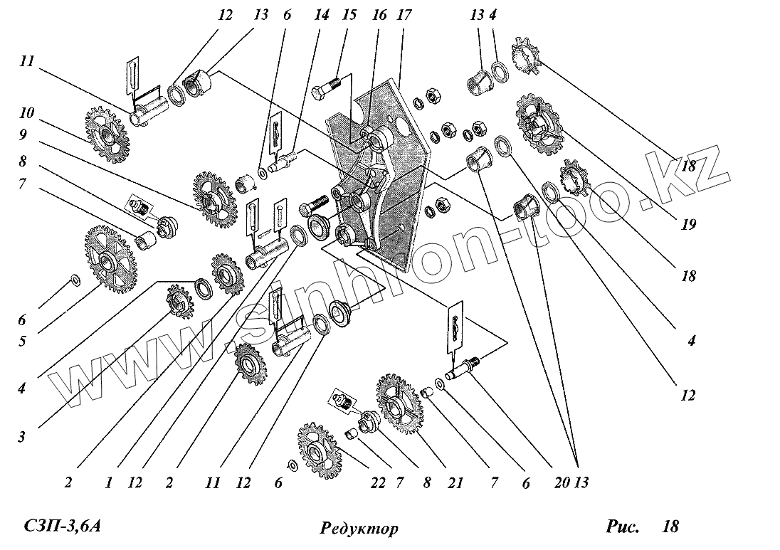 Каталог запасных частей к технике: Сибсельмаш СЗП-3,6А. Редуктор