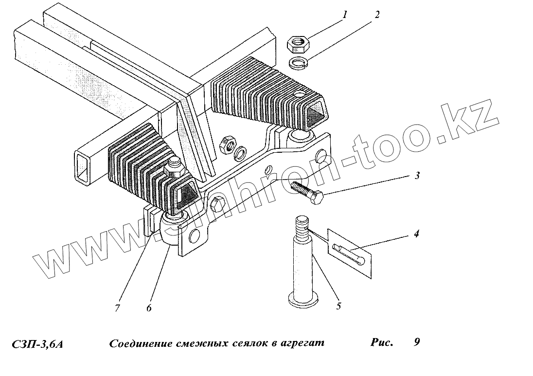 Каталог запасных частей к технике: Сибсельмаш СЗП-3,6А. Соединение смежных сеялок в агрегат
