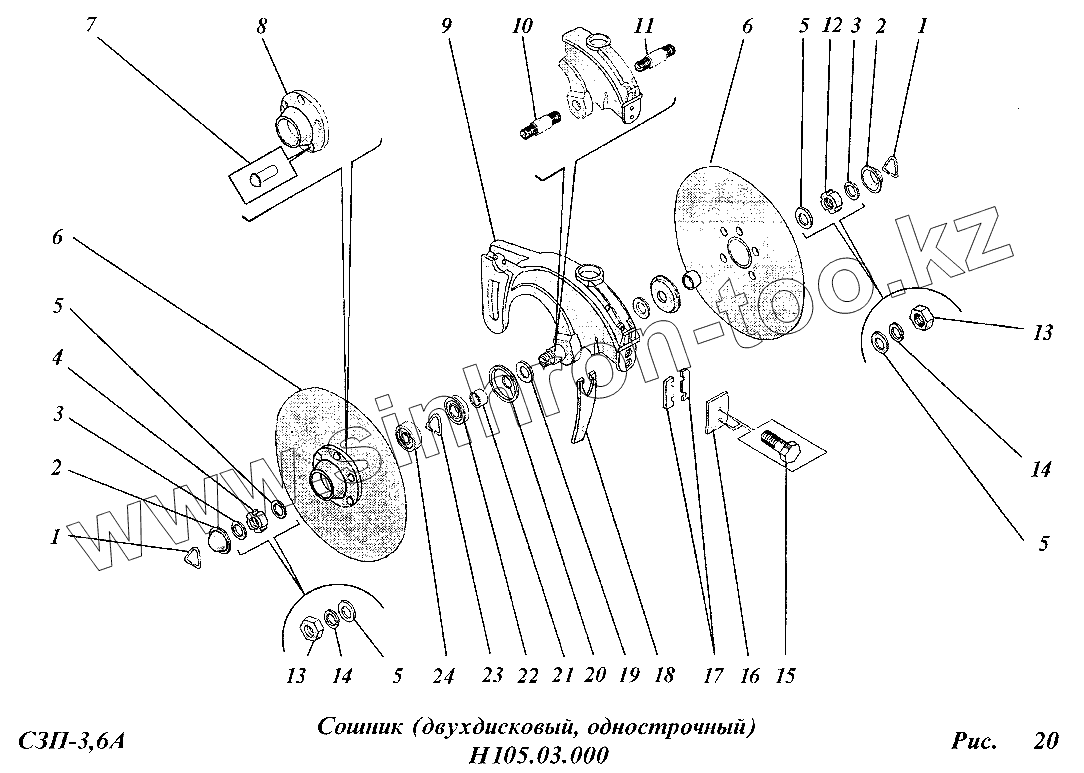 Каталог запасных частей к технике: Сибсельмаш СЗП-3,6А. Сошник Н105.03.000