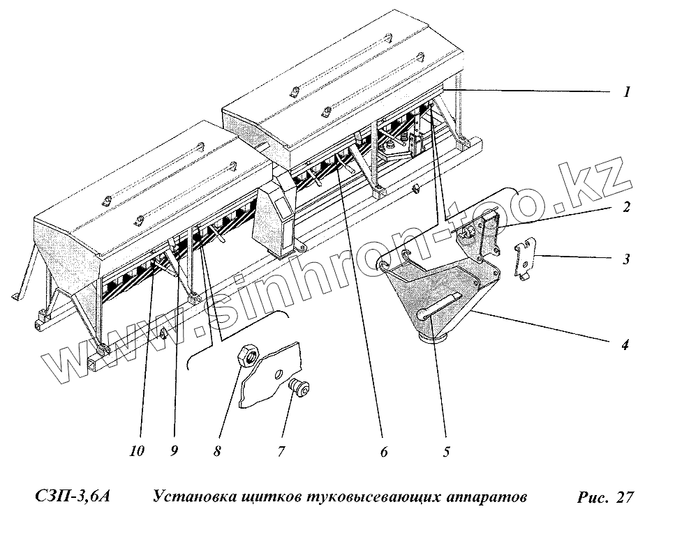 Каталог запасных частей к технике: Сибсельмаш СЗП-3,6А. Установка щитков туковысевающих аппаратов