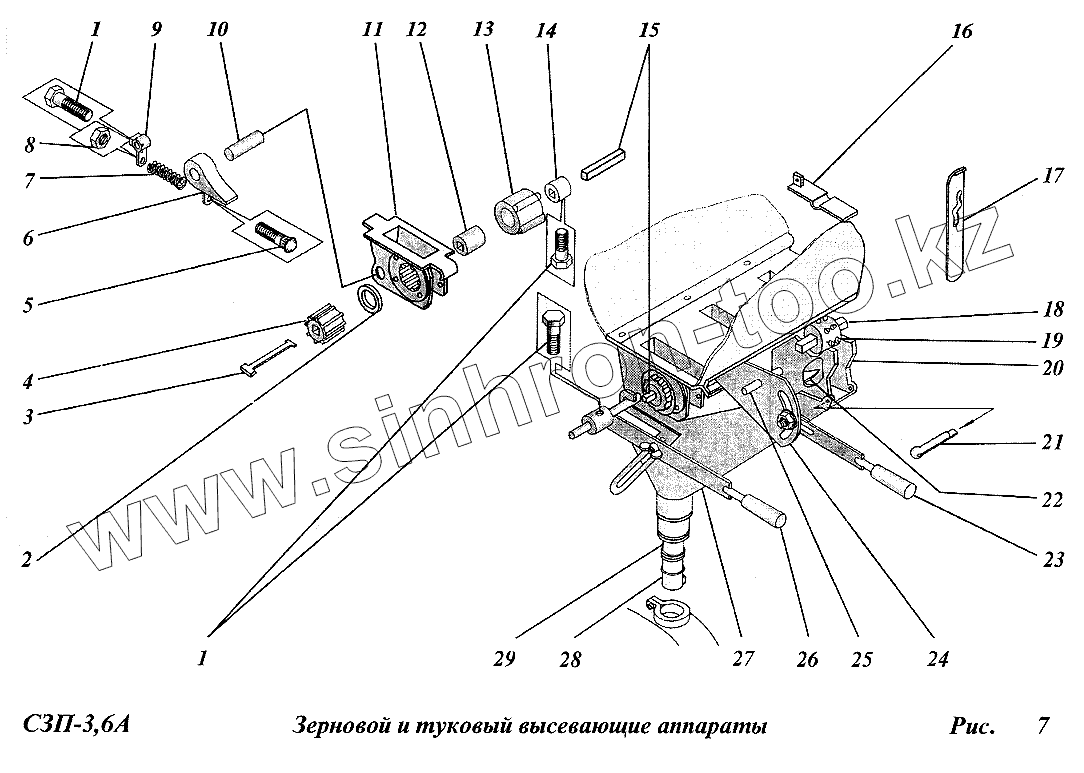 Каталог запасных частей к технике: Сибсельмаш СЗП-3,6А. Зерновой и туковысевающие аппараты