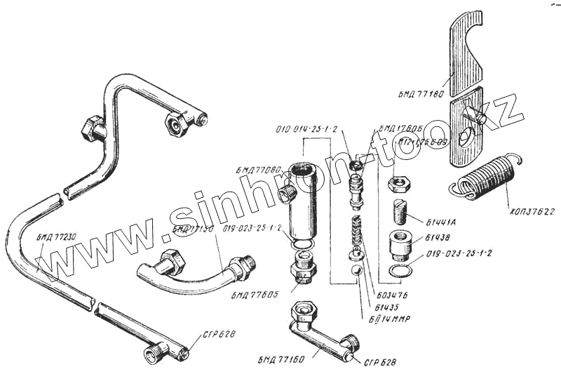 Каталог запасных частей к технике: ТеКЗ БМ-6А. Клапан перепускной. Маслопровод
