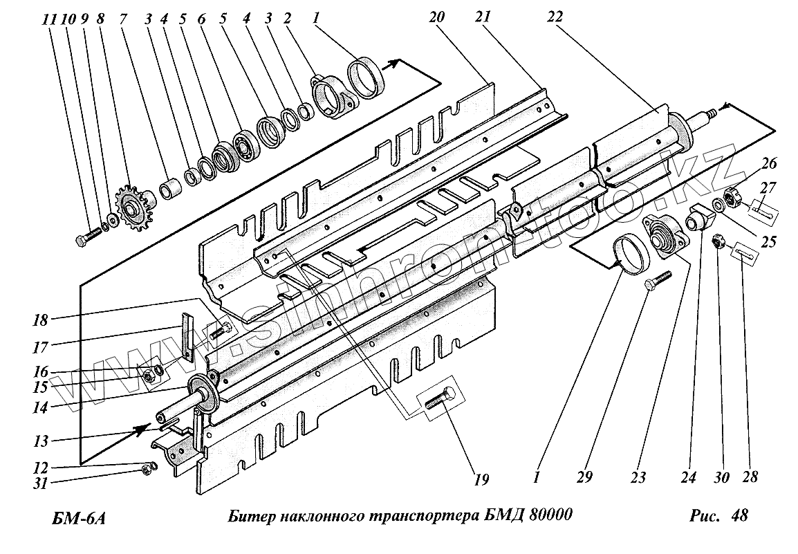 Каталог запасных частей к технике: ТеКЗ БМ-6А (2005). Битер наклонного транспортера (БМД80080)
