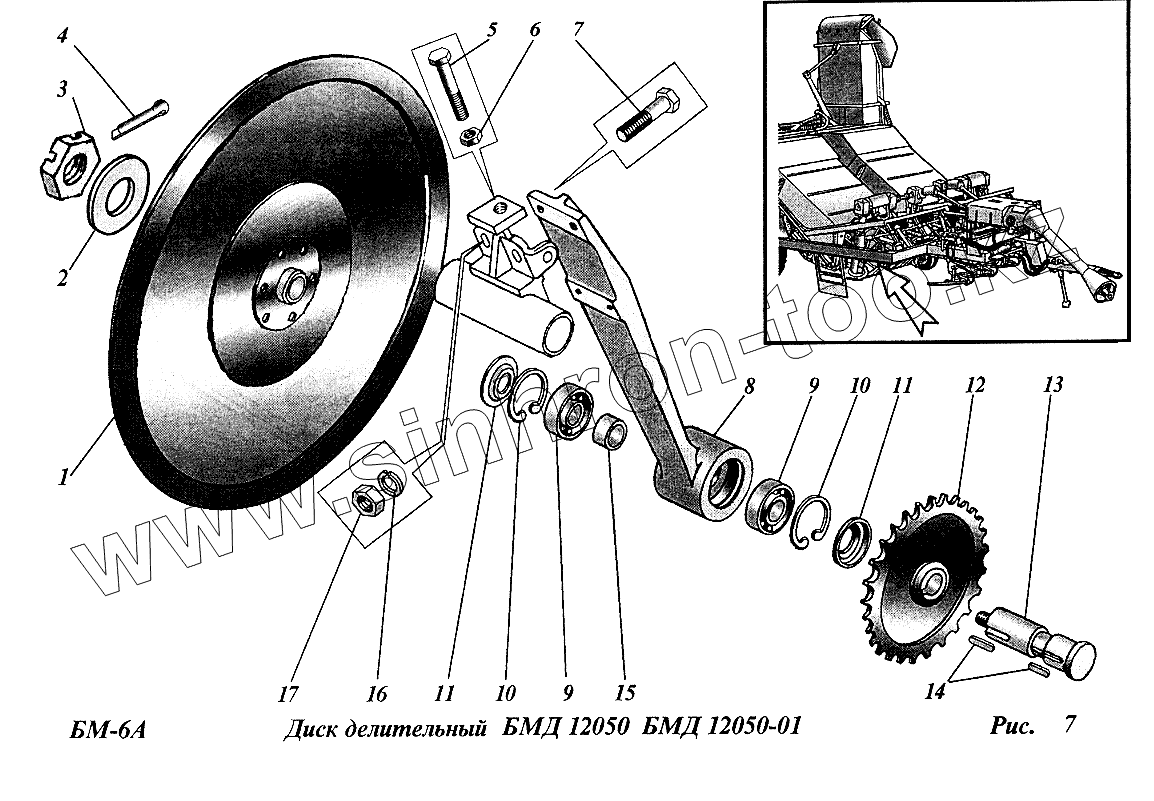 Каталог запасных частей к технике: ТеКЗ БМ-6А (2005). Диск делительный (БМД12050, БМД12050-01)