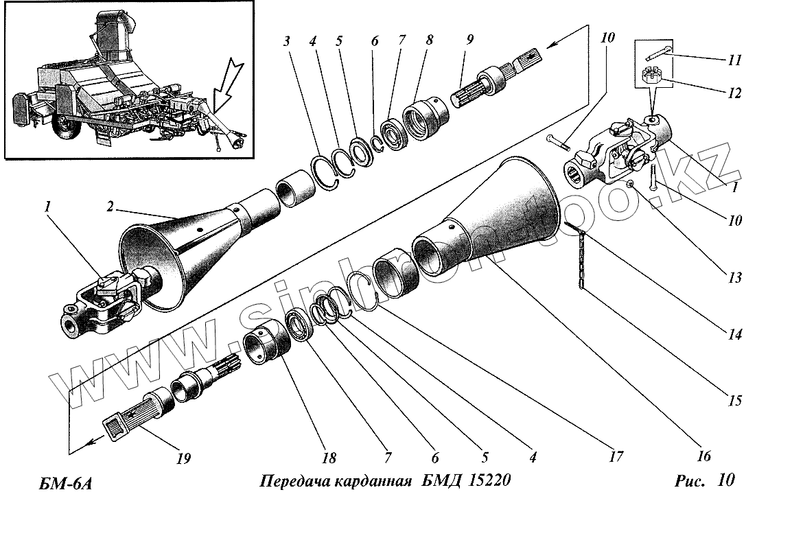 Каталог запасных частей к технике: ТеКЗ БМ-6А (2005). Передача карданная очистителя головок (БМД59040)