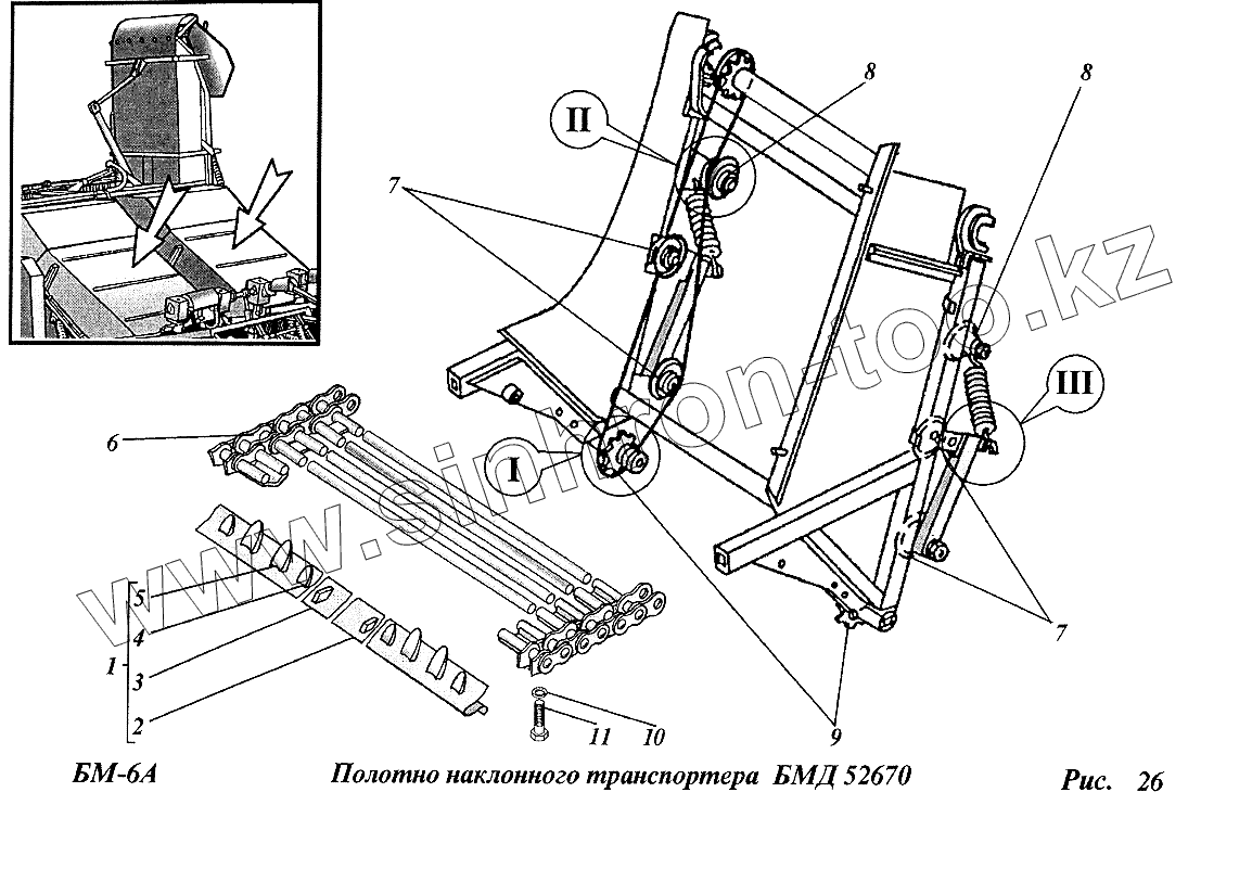 Каталог запасных частей к технике: ТеКЗ БМ-6А (2005). Полотно наклонного транспортера (БМД52670)