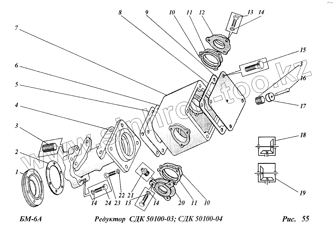 Каталог запасных частей к технике: ТеКЗ БМ-6А (2005). Редуктор (СДК50100-03, СДК50100-04)