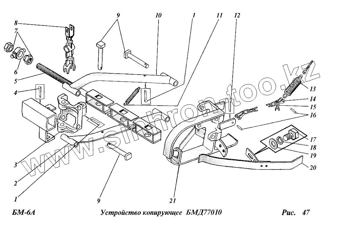 Каталог запасных частей к технике: ТеКЗ БМ-6А (2005). Устройство копирующее (БМД 77010)