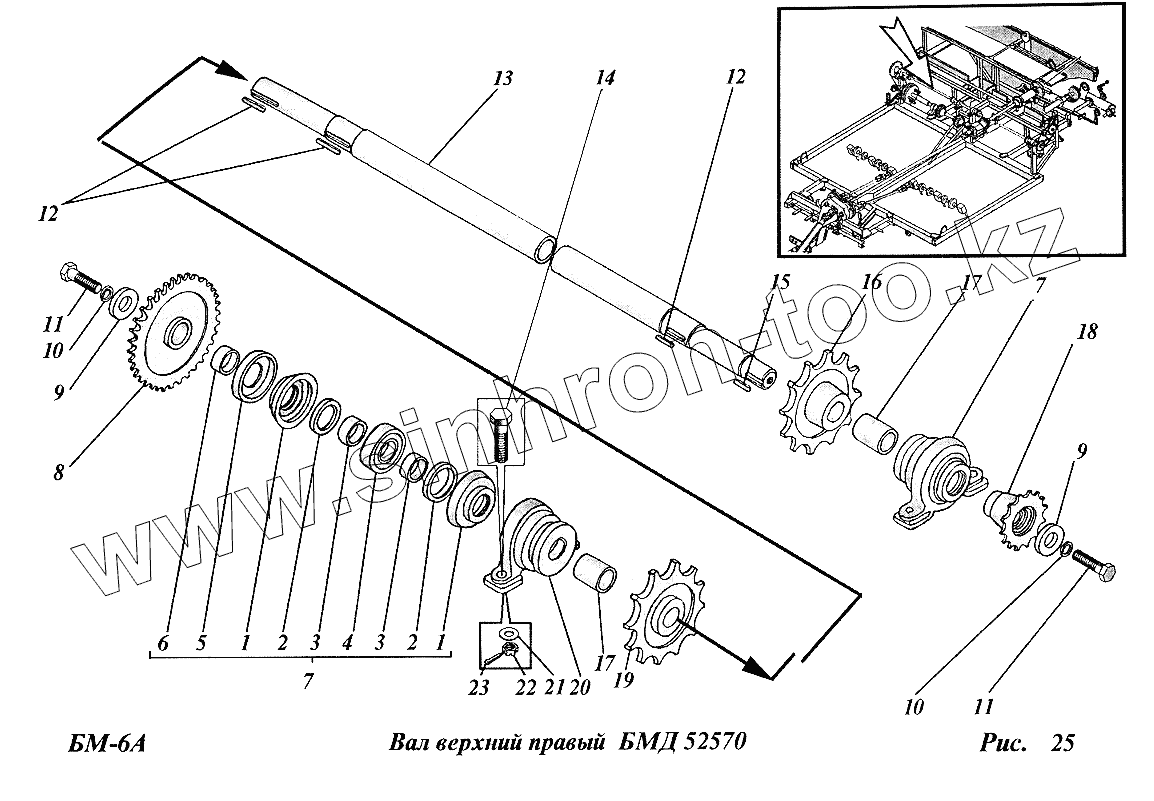 Каталог запасных частей к технике: ТеКЗ БМ-6А (2005). Вал верхний правый (БМД52570)