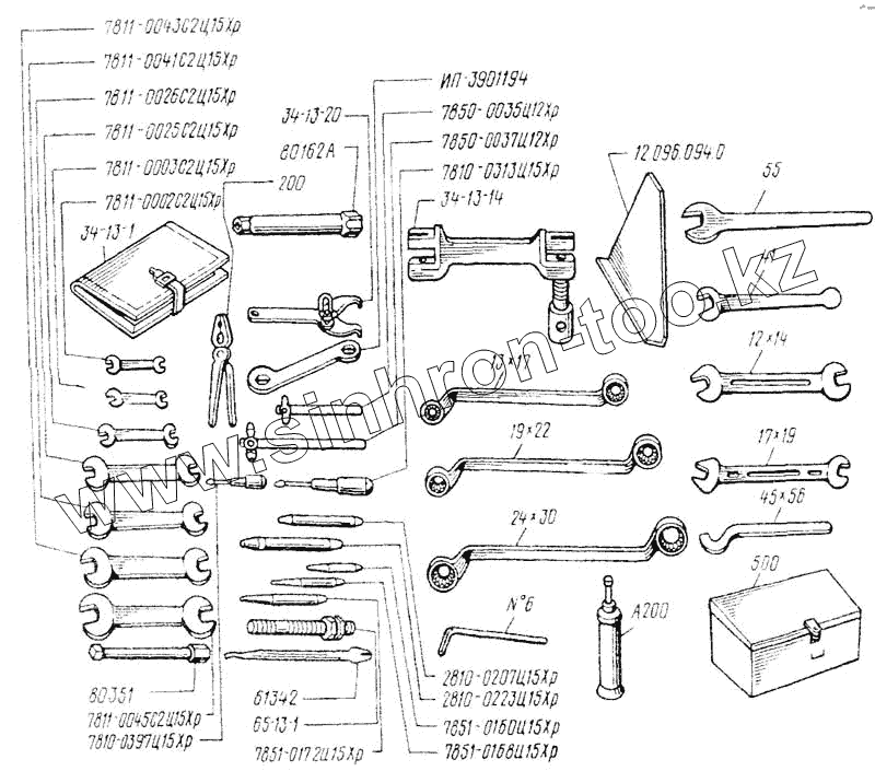 Каталог запасных частей к технике: ТКЗ КС-6Б. Комплект инструмента