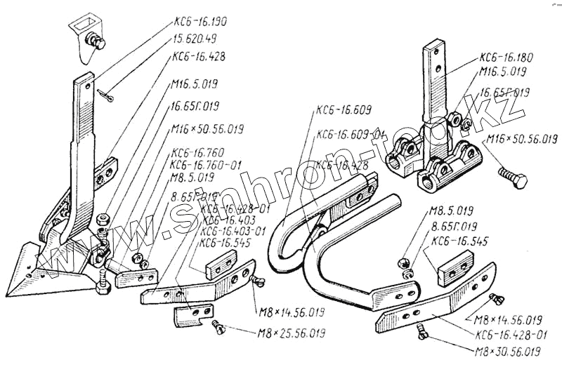 Каталог запасных частей к технике: ТКЗ КС-6Б. Копир полозковый. Копир-рыхлитель