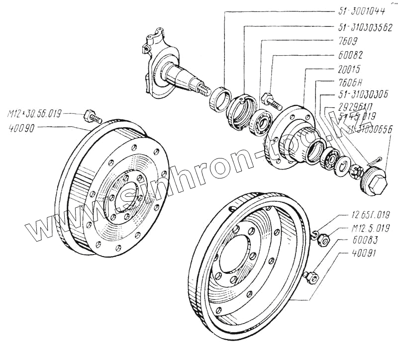 Каталог запасных частей к технике: ТКЗ КС-6Б. Мост управляемых колес. Ступицы и колеса