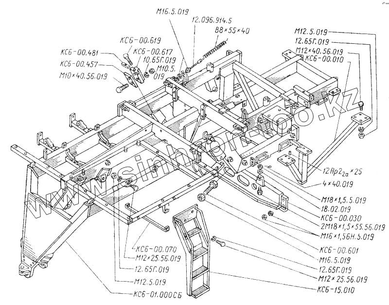 Каталог запасных частей к технике: ТКЗ КС-6Б. Рама основная. Трап