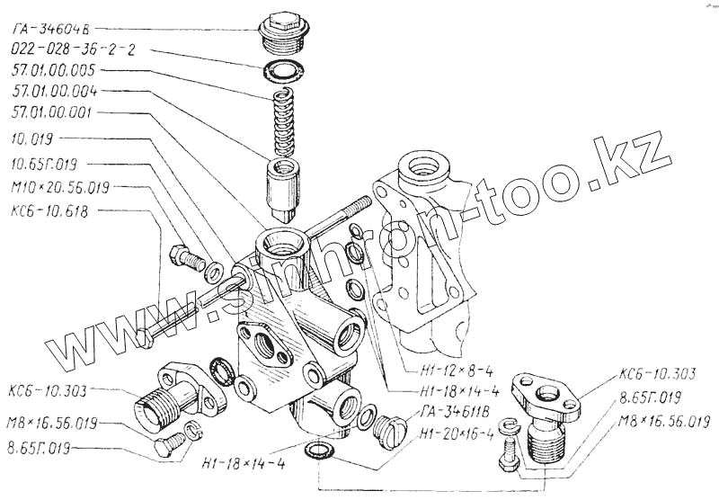 Каталог запасных частей к технике: ТКЗ КС-6Б. Распределитель. Секция переливная