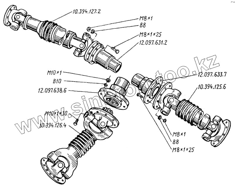 Каталог запасных частей к технике: ТКЗ КС-6Б. Редуктор. Валы карданные