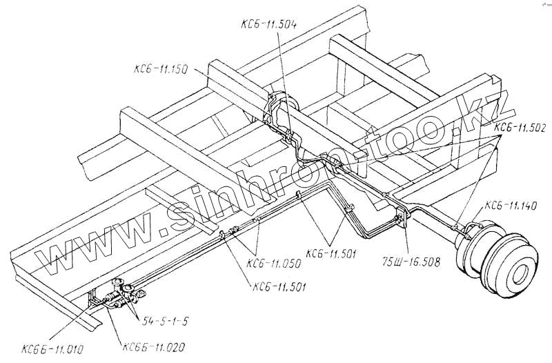 Каталог запасных частей к технике: ТКЗ КС-6Б. Трубопроводы гидравлических тормозов