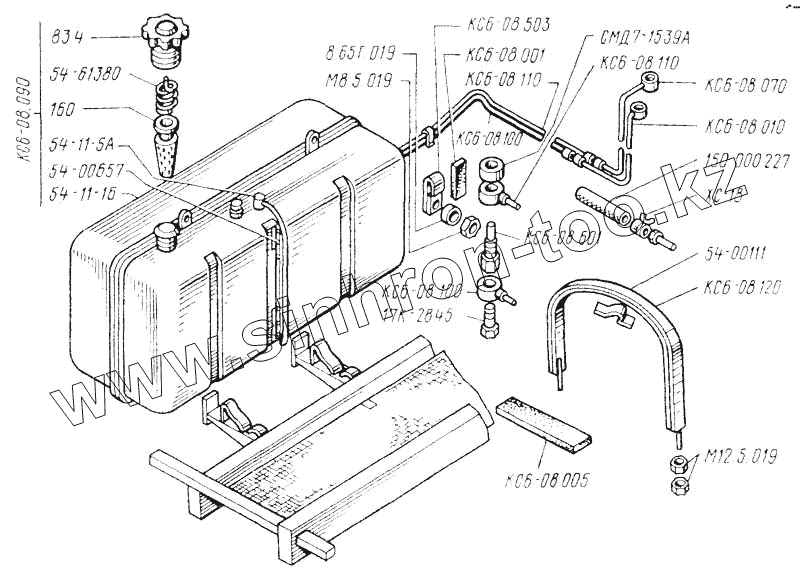 Каталог запасных частей к технике: ТКЗ КС-6Б. Установка топливного бака