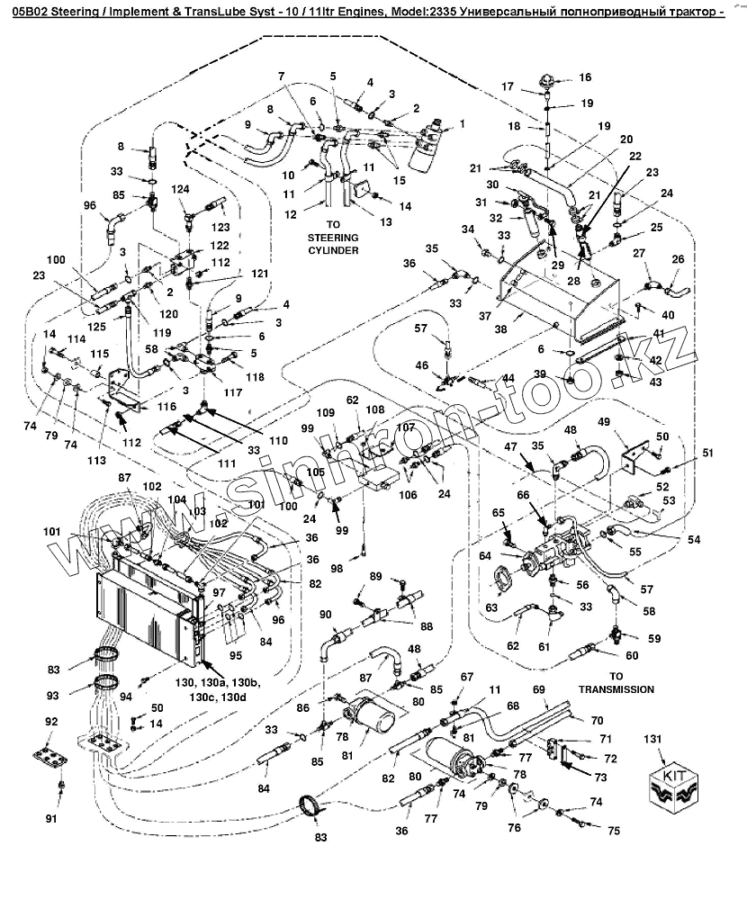 Каталог запасных частей к технике: Versatile серии 2000. 05B02 Рулевое управление и система смазки