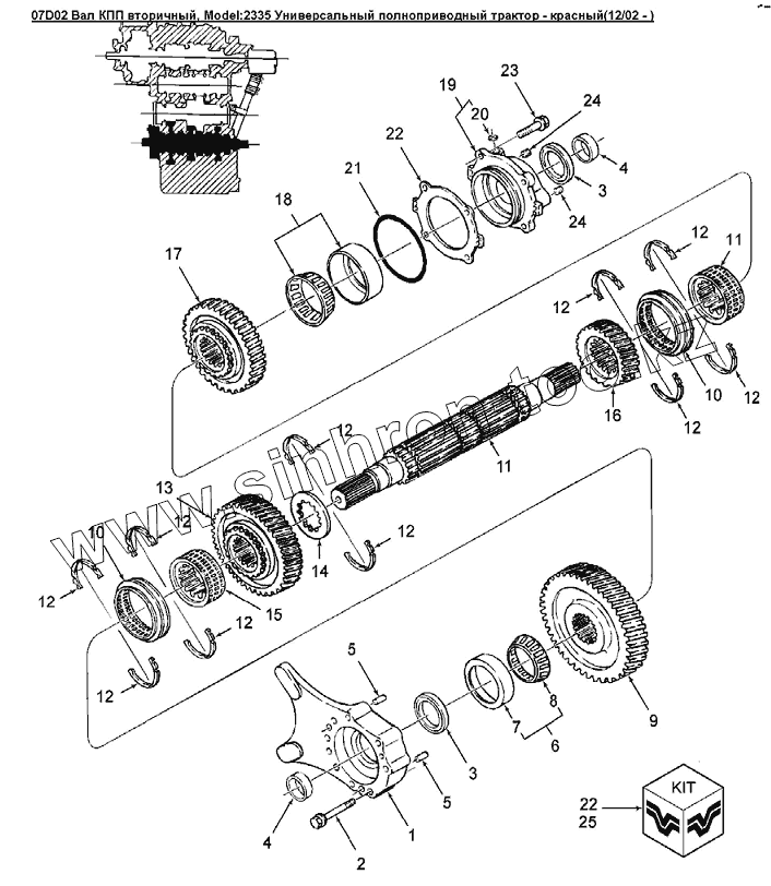 Каталог запасных частей к технике: Versatile серии 2000. 07D02 Вал КПП вторичный
