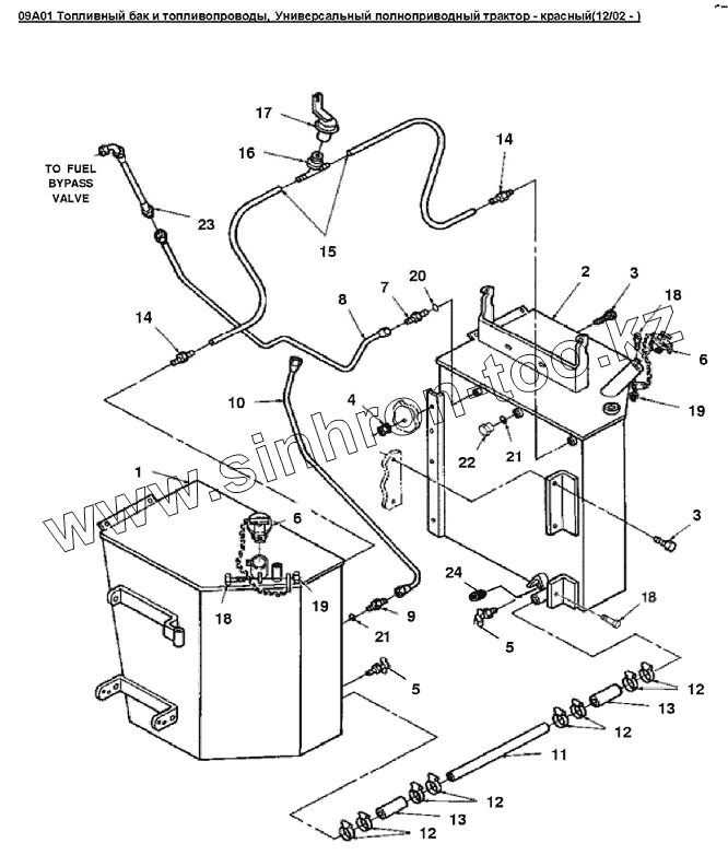 Каталог запасных частей к технике: Versatile серии 2000. 09A01 Топливный бак и топливопроводы