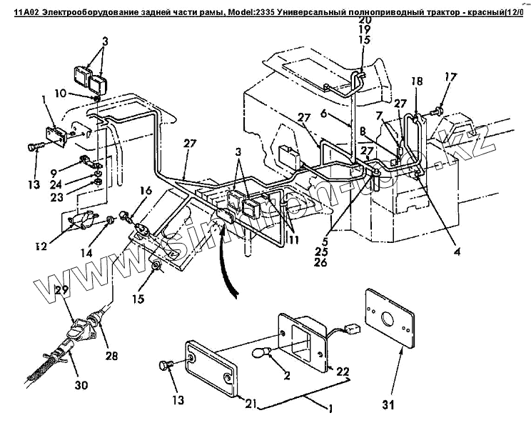 Каталог запасных частей к технике: Versatile серии 2000. 11A02 Электрооборудование задней части рамы