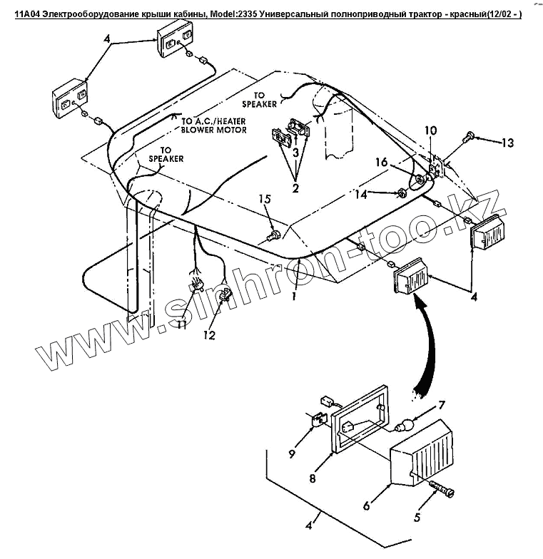 Каталог запасных частей к технике: Versatile серии 2000. 11A04 Электрооборудование крыши кабины