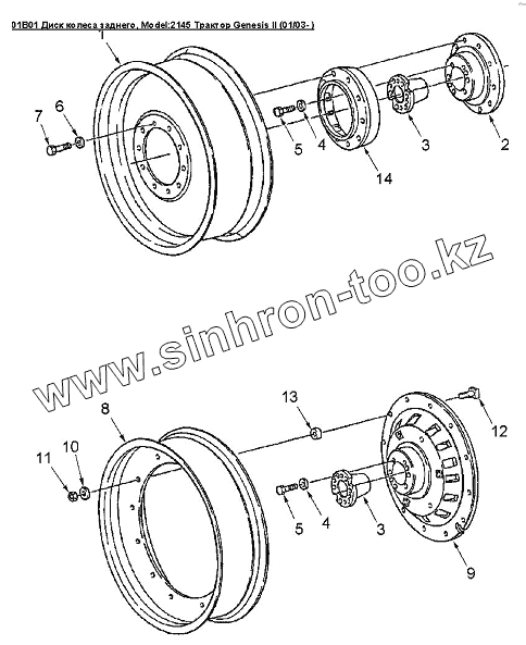 Каталог запасных частей к технике: Versatile серии GENESIS. 01B01 Диск колеса заднего