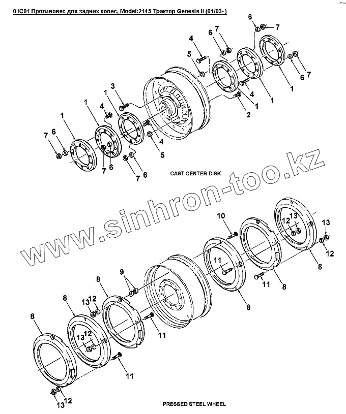 Каталог запасных частей к технике: Versatile серии GENESIS. 01C01 Противовес для задних колес