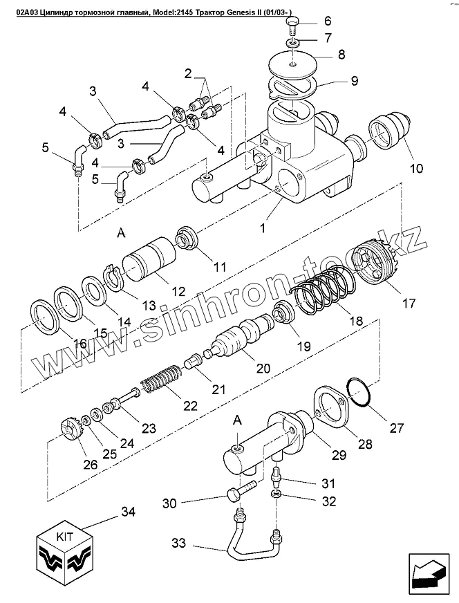 Каталог запасных частей к технике: Versatile серии GENESIS. 02A03 Цилиндр тормозной главный