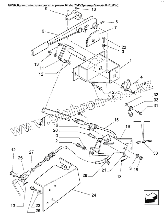 Каталог запасных частей к технике: Versatile серии GENESIS. 02B02 Кронштейн стояночного тормоза