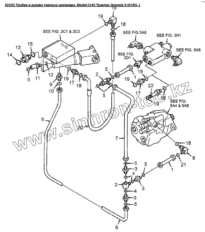 Каталог запасных частей к технике: Versatile серии GENESIS. 02C02 Трубки и рукава тормоза цилиндра