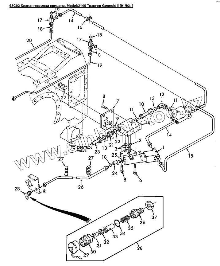 Каталог запасных частей к технике: Versatile серии GENESIS. 02C03 Клапан тормоза прицепа