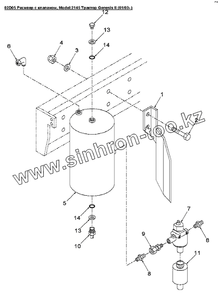Каталог запасных частей к технике: Versatile серии GENESIS. 02D05 Ресивер с клапаном
