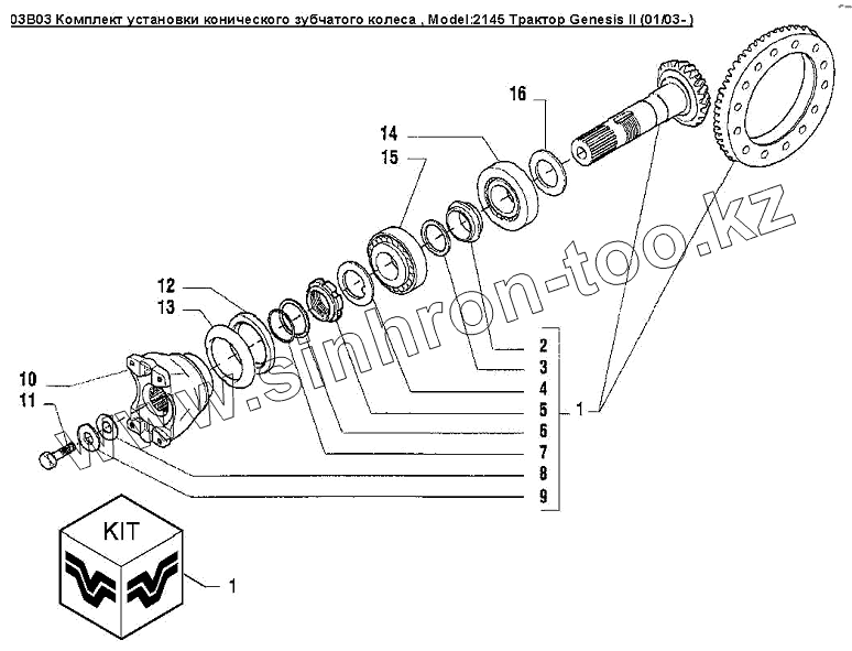 Каталог запасных частей к технике: Versatile серии GENESIS. 03B03 Комплект установки конического зубчатого колеса